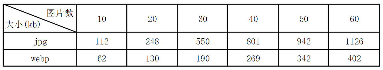同样质量的WebP与JPG图片,在线加载速度测试。测试的JPG和WebP图片大小如下: